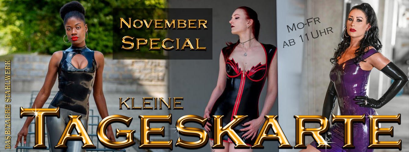 Nur im November 2024 bietet das einzigartige BDSM Studio Stahlwerk in Bochum diese Sonderkonditionen – unschlagbar günstig & geil. Besuche die Ladies und erlebe Latex und Leder im echten Dominastudio: